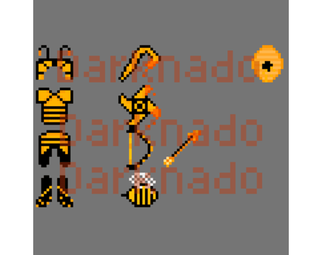 Heylo! I have made bee assets for an asset jam! Armor, weapons, bee, and hive are included.